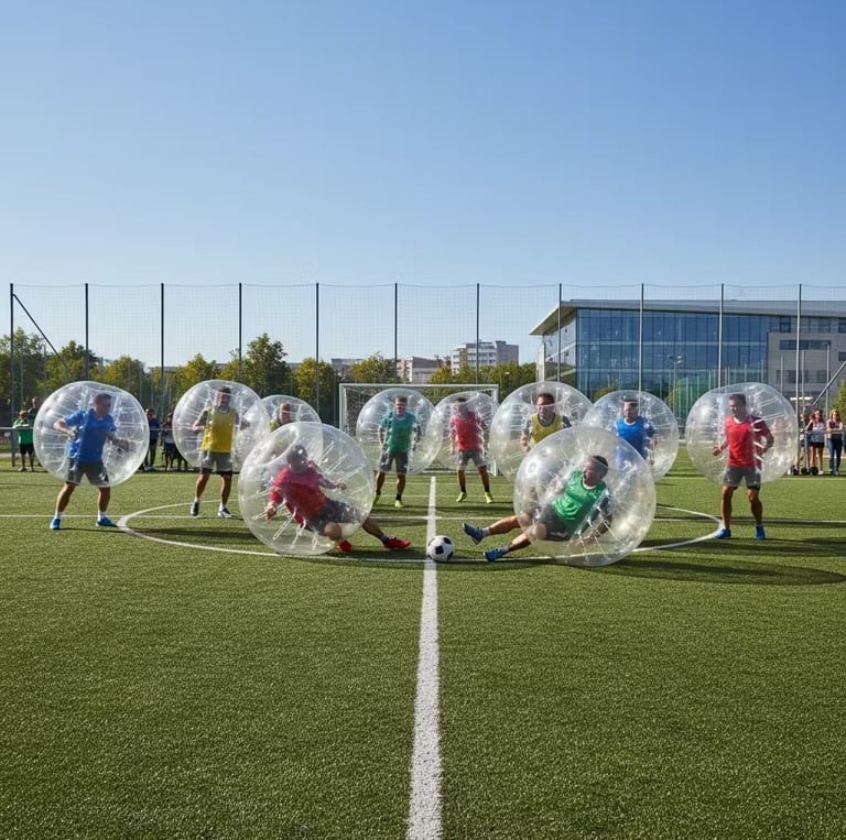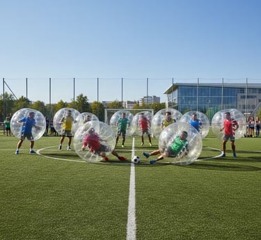 La primera opción es que el propio cliente reserve el campo donde quiera realizar la actividad. En ese caso, nosotros nos encargamos de llevar todo el material necesario para el bubble football y organizar los juegos durante el evento.